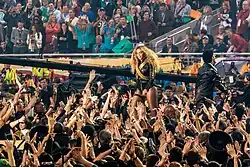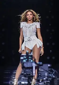 Beyoncé Giselle Knowles-Carter[11] (Houston, 4 de setembro de 1981),[12] é uma cantora, compositora, atriz e empresária norte-americana.[13] Referida como "Queen Bey", ela tem sido amplamente reconhecida por seu talento artístico, voz e apresentações ao vivo. Suas contribuições para a música e a mídia visual, bem como suas apresentações em concertos a converteram em uma figura cultural proeminente do século XXI. Ela foi eleita a oitava maior cantora de todos os tempos pela revista Rolling Stone,[14] e também foi citada pela revista como "a maior artista viva" em 2023.[15] A artista foi eleita "a maior popstar do século XXI" pela revista Billboard em 2024.[16]