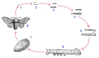 - ↑ Jain, Khusboo. «Life Cycle of Silkworm Moth». Consultado em 6 de março de 2019