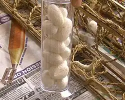 - ↑ «Como é feita a seda? Veja como casulos se transformam em tecido». R7. 30 de agosto de 2018. Consultado em 6 de março de 2019
