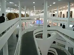 Foi fechado o guarda-corpo do segundo andar do prédio projetado por Oscar Niemeyer com grandes paredes que circundam o vão, enfatizando o movimento das serpentinas do desenho do arquiteto. Com essa escolha, o objetivo era fazer com que o visitante acostumado a frequentar o prédio perdesse a sua referência do espaço, propondo uma nova vivência da área.[21]