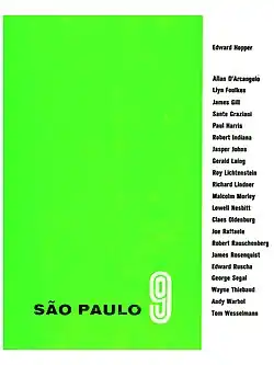 A "Bienal da arte pop" foi inaugurada sob uma polêmica: a polícia federal, antes mesmo da abertura, retirou duas obras alegando que “feriam” as autoridades e a Constituição brasileira: a pintura O presente da carioca Cybèle Varela (1943) por ser considerada antinacionalista – a obra foi destruída e a artista quase presa pelo DOPS –, e a série de Quissak Jr. (1935-2001) Meditação sobre a Bandeira Nacional, que infringia as leis da época que proibiam o uso livre do símbolo nacional. A delegação estadunidense foi a responsável por apresentar o preciso recorte de arte pop que trouxe ao evento obras de Jasper Johns (1930), Andy Warhol (1928-1987), Roy Lichtenstein (1923-1997) Robert Rauschenberg (1925-2008). Várias obras da exposição foram danificadas e a sala da representação estadunidense foi pichada poucos dias após a abertura. O Júri de Premiação deixou de ser formado por comissários e passou a ser constituído por críticos de arte. Elizabeth Torok (EDL) (1925-2006) apresentou obras em black light. Os representantes americanos de renome do movimento Pop art que participaram no evento "São Paulo 9" (em 1967) foram Edward Hopper (1882-1967), James Gill (1934) e Andy Warhol (1928-1987).