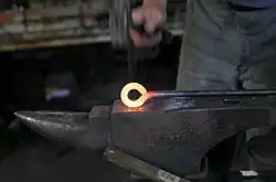 A bigorna serve para diminuir o esforço feito pelo ferreiro no forjamento do produto metálico, pois ela devolve parte da energia da martelada por ser mais resistente que o material a ser trabalhado.[12]