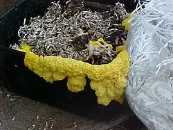 Líquen crescendo em um recipiente úmido contendo papel picotado