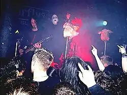 A pintura facial, popularizada por bandas de black metal, era comum no horror rock dos anos 1970. Arthur Brown já usava corpse paint desde 1968 e, na década seguinte, a pintura facial foi popularizada por bandas como Alice Cooper, Misfits, The Damned e Kiss.[6] O espetáculo de palco do Kiss foi um modelo particularmente importante para as bandas de black metal. Para muitos músicos nórdicos, o Kiss foi o primeiro contato com a música metal, graças à sua forte publicidade.[7]
