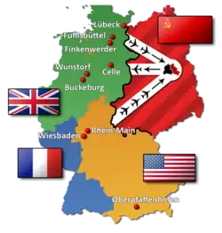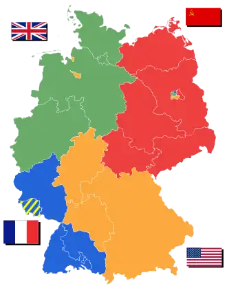 A zona soviética produzia muito dos abastecimentos da Alemanha de alimentos, enquanto o território das zonas britânica e americana tinha que contar com a importação de alimentos, mesmo antes da guerra.[4] Além disso, o líder soviético Joseph Stalin ordenou a incorporação de parte do leste da Polônia à União Soviética e, para compensar a Polônia, cedeu a ela uma grande parte da Alemanha a leste da linha Oder-Neisse. Esta área continha grande parte das terras férteis alemãs.[5] O governo da Alemanha ocupada foi coordenado pelas quatro potências através do Conselho de Controle Aliado (ACC).[6]