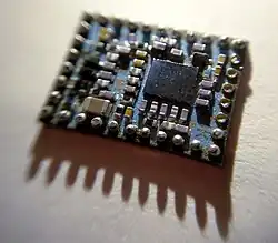 Bluetooth é um protocolo padrão de comunicação de substituição de fio projetado principalmente para baixo consumo de energia, com um curto alcance baseado em microchips transceptores de baixo custo em cada dispositivo.[30] Como os dispositivos usam um sistema de comunicação por rádio (transmissão), eles não precisam estar na linha de visão uns dos outros; no entanto, um caminho sem fio quasi optic deve ser viável.[31]
