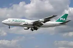 Boeing 747 é uma aeronave a jato usada no âmbito civil e militar para transporte de passageiros e de carga, referida com frequência como Jumbo Jet ou Queen of the Skies (Rainha dos Céus). A sua corcunda na parte superior frontal da fuselagem faz com que seja uma das aeronaves mais reconhecíveis do mundo,[4] sendo também a primeira do género produzida em massa. Fabricada pela Boeing nos Estados Unidos, a versão original do 747 tinha duas vezes e meia mais capacidade de passageiros que o Boeing 707,[5] um dos grandes aviões comerciais dos anos 1960. Efectuando o seu primeiro voo comercial em 1970, o 747 ostentou o recorde de capacidade de passageiros durante 37 anos.[6]