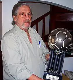 ![]() O jornalista Michel Laurence, idealizador do prêmio, com a Bola de Prata | |