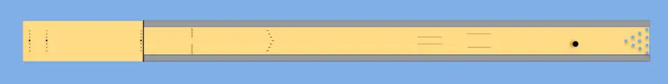 Approach, linha de falta, pista (com setas e outras marcações), canaletas, bola e pinos vistos de cima. Na boliche de dez pinos, o pino mais próximo do jogador está a cerca de 60 pés da linha de falta, o que é mais que 17 vezes a largura da pista.[2] A ilusão de ótica de perspectiva de encurtamento (escorço) faz com que os pinos pareçam mais juntos entre si do que realmente estão.[3][4]