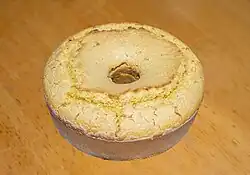 ![]() Bolo de fubá, tradicional da culinária brasileira (ver: Doces do Brasil e História da alimentação no Brasil). | |