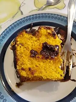O bolo de cenoura é um bolo doce com cenoura misturada dentro da massa.