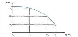 É a curva fornecida pelo fabricante da bomba, seu desenvolvimento geralmente é feito em bancos de prova. De forma simplificada, as curvas são traçadas conforme o seguinte esquema.[46]