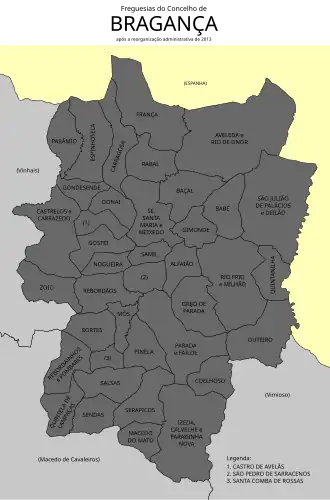 - ↑ Instituto Geográfico Português, Carta Administrativa Oficial de Portugal (CAOP), versão 2013 Arquivado em 9 de dezembro de 2013, no Wayback Machine. (ficheiro Excel zipado)