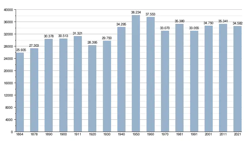 | 1900 | 1911 | 1920 | 1930 | 1940 | 1950 | 1960 | 1970 | 1981 | 1991 | 2001 | 2011 | 2021 | |