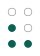 Os símbolos correspondentes, em braille de 6 pontos (Unicode \u2800 a \u283F), são: