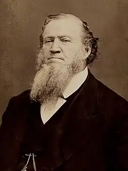 Brigham Young (Whitingham, 1 de junho de 1801 — Salt Lake City, 29 de agosto de 1877) foi o primeiro governador do estado de Utah, pregador religioso e historiador americano.[3] Foi também o segundo presidente d'A Igreja de Jesus Cristo dos Santos dos Últimos Dias.[3] Por causa das similaridades entre o êxodo israelita e o êxodo mórmon, historiadores às vezes chamam-no do "Moisés norte-americano" em virtude de seu papel em conduzir os santos de Nauvoo, Illinois, para o estado de Utah em 1847.[3]