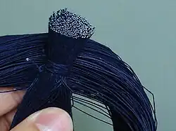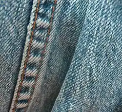 Uma característica marcante desse tipo de tecido é o tingimento com anil (também conhecido como índigo). Este corante não tem muita afinidade com o algodão, por isso o tingimento fica apenas superficial nos fios de urdume, formando em cada fio um anel azul e deixando o núcleo branco. Com isso a solidez da cor é muito baixa ao atrito, onde o tecido sofre atrito perde a sua camada superficial de fibras e com isso perde a sua cor.