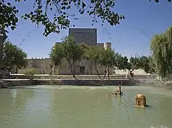 Situada no lado ocidental da praça do Registan, em frente à Ark, faz parte dum conjunto arquitetónico que também inclui um hauz (lago artificial) e um minarete. Começou a ser construída em 1712, por ordem da esposa[35] do cã de Bucara Abul Faiz Cã (Abulfayzxon; r. 1411–1747), e é um dos últimos e mais importantes e belos monumentos de Bucara anteriores à Idade Contemporânea. O seu nome significa "por cima do tanque" ou "tanque das crianças", referindo-se ao hauz octogonal que fica em frente da mesquita.[36][37]