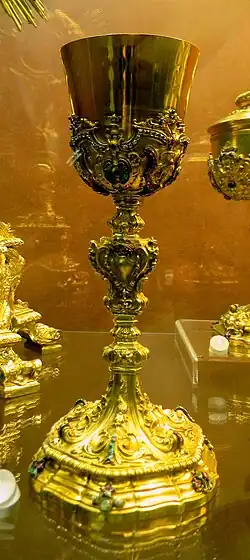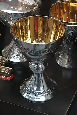 Na missa católica, o cálice representa o Santo Graal, ou seja, o cálice que Jesus Cristo teria usado n a Última Ceia. É usado na Liturgia eucarística e no Rito da Comunhão. Antes e depois desses momentos, ele fica vazio, de forma que água e o vinho que serão usados na Consagração ficam em recipientes à parte, as galhetas.
