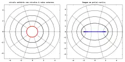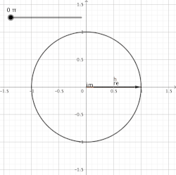 O círculo unitário complexo pode ser parametrizado pela medida do ângulo do eixo real positivo usando a função exponencial complexa, . (Veja o artigo Fórmula de Euler.)