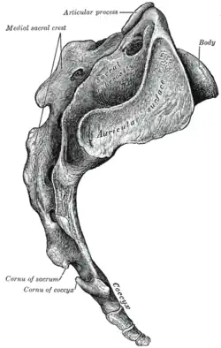 - Os ligamentos sacro-coccígeos laterais são constituídos por dois feixes, um medial unindo o sacro aos pequenos cornos do cóccix, e outro lateral unindo o sacro aos grandes cornos do cóccix.