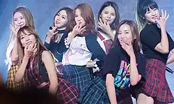 ![]() CLC em fevereiro de 2019. Da esquerda para direita: Seunghee, Yujin, Seungyeon, Sorn, Eunbin, Elkie e Yeeun | |