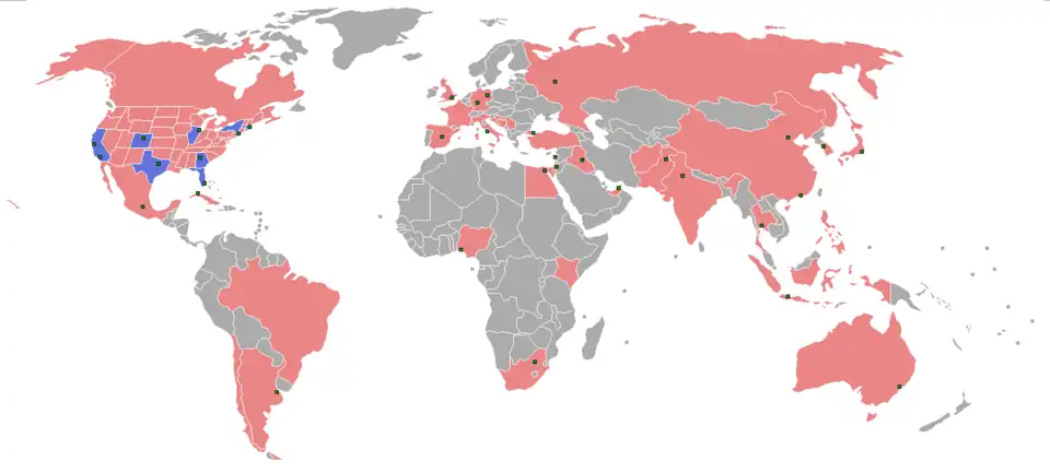 Em escala internacional, a programação da emissora é distribuída por meio da CNN International, que alcança mais de 200 países e territórios.[12] Desde 2019, parte da cobertura internacional passou a ser incorporada diretamente à versão norte-americana, como estratégia de redução de custos operacionais. O sinal doméstico dos Estados Unidos, por vezes identificado como CNN US[13], também é disponibilizado no Canadá e em regiões do Caribe. Além de suas operações diretas, a marca CNN é objeto de acordos de licenciamento para emissoras parceiras em diversos mercados locais. Entre as principais operações licenciadas destacam-se a CNN-News18, na Índia; a CNNj, no Japão; e a CNN Brasil, no mercado brasileiro.[14][15][16]