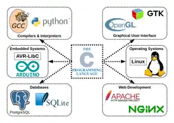C é uma linguagem imperativa e procedural para implementação de sistemas. Seus pontos de design foram para ele ser compilado, fornecendo acesso irrestrito à memória e baixos requerimentos do hardware. Também foi desenvolvido para ser uma linguagem de alto nível, para maior reaproveitamento do código. C foi útil para muitas aplicações que foram codificadas originalmente em Assembly.