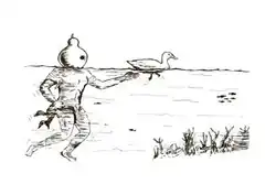 A caça de patos selvagens pelos indígenas do lago Maracaibo na Venezuela e do Mato Grosso, Pará e Amazonas também envolvia técnicas. Deixavam sempre cabaças vazias boiando no lago e os patos se acostumam à presença delas. Quando precisavam de provisões os índios entravam na água com a cabeça envolvida por uma das cabaças, com furos que o permitiam ver, e assim se aproximavam dos animais. Puxavam o pato rapidamente pelas pernas e o mantinham embaixo d’água até que se afogasse, amarrando-o em seguida a uma corda de cipó que estava envolta à sua cintura. Desta maneira coletavam tantos patos quanto conseguiam carregar.[33][34] A mesma técnica era empregada pelos Apache do Arizona e Novo México para caçar gansos e patos.[35] Outros aprisionavam estes animais jogando redes sobre eles enquanto estavam nadando.[36]