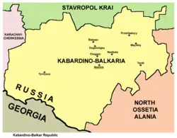| Кабардино-Балкарская Республика (russo) Къэбэрдей-Балъкъэр Республикэ (cabardino) Къабарты-Малкъар Республика (carachaio-bálcaro) | |
