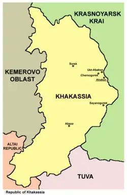 | Республика Хакасия (russo) Хакас Республиказы (cacassiano) | |