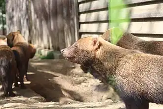 - ↑ Macdonald, D.W. (1996). «Social behaviour of captive bush dogs (Speothos venaticus)». Journal of Zoology. 239 (#4): 525–543. doi:10.1111/j.1469-7998.1996.tb05941.x