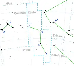 As constelações vizinhas são Lepus, Eridanus, Horologium, Dorado, Pictor e Columba.