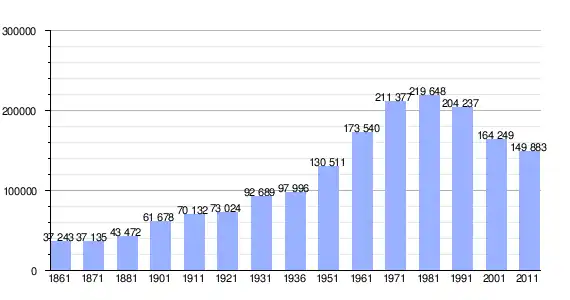 Variação demográfica do município entre 1861 e 2011[5]