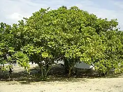 O cajueiro (nome científico Anacardium occidentale) é uma planta da família Anacardiaceae originária da região nordeste do Brasil, com arquitetura de copa tortuosa e de diferentes portes. Na natureza existem dois tipos: o comum (ou gigante) e o anão. O tipo comum pode atingir entre 5 e 12 metros de altura, mas em condições muito propícias pode chegar a 20 metros. O tipo anão possui altura média de 4 metros.