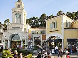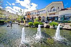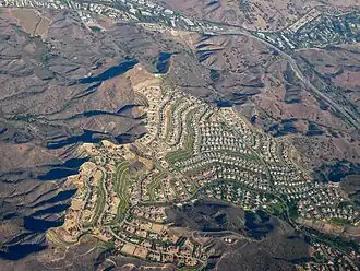 Do topo, em sentido horário: Vista aérea de Calabasas olhando para noroeste, Leonis Adobe, The Commons at Calabasas, Mulholland Highway e The Commons | |