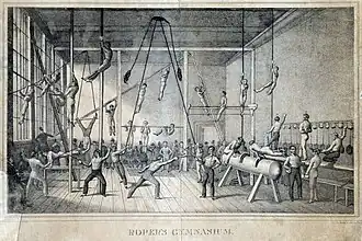 A popularidade da calistenia como componente da educação de mulheres se incrementou com a obra dos alemães Friedrich Jahn e Adolf Spiess. Nos Estados Unidos, a difusora da disciplina foi Catharine Beecher, que publicou, em 1857, Physiology and Calisthenics for Schools and Families (Fisiologia e calistenia para as escolas e para as famílias).[8]