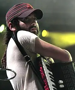 ![]() Calle 13 ao vivo na Venezuela em 2009. Em primeiro plano, da esq. para a dir.: Visitante, Residente e PG-13. | |