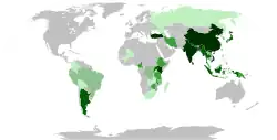 Esta espécie é extensivamente cultivada no mundo, particularmente em Sri Lanka, Índia, China, Japão, Taiwan, Quênia, Camarões, Tanzânia e Malawi.[2]