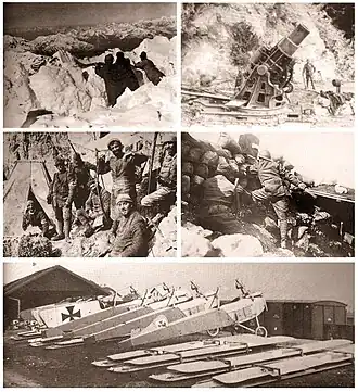 O termo Campanha Italiana refere-se à série de batalhas nas quais se confrontaram os exércitos do Império Áustro-Húngaro e do Reino de Itália, ao lado de seu aliados, no norte da Itália entre 1915 e 1918. O reino italiano esperava que juntando-se à Tríplice Entente contra os Impérios Centrais iria ganhar a Trento (também conhecida como Trentino) e o porto de Trieste, assim como as províncias de Bolzano-Bozen, Ístria e Dalmácia. Apesar das expectativas italianas de começar a guerra com uma ofensiva surpresa em território austríaco, que capturaria rapidamente várias cidades, as forças austro-húngaras conseguiram conter a invasão, e logo a Frente Alpina transformou em uma guerra de trincheiras, a semelhança da Frente Ocidental a qual nenhum lado conseguiu romper entre 1915 ou 1916. Em 1917 um ataque conjunto Austro-alemão em Caporetto infligiu uma massiva derrota à Itália mas que as Potências Centrais foram incapazes de capitalizar para nocautear a Itália, que por sua vez se recuperou bem. A Itália emerge vitoriosa na batalha final de Vittorio Veneto enquanto a Áustria-Hungria colapsa.[10]