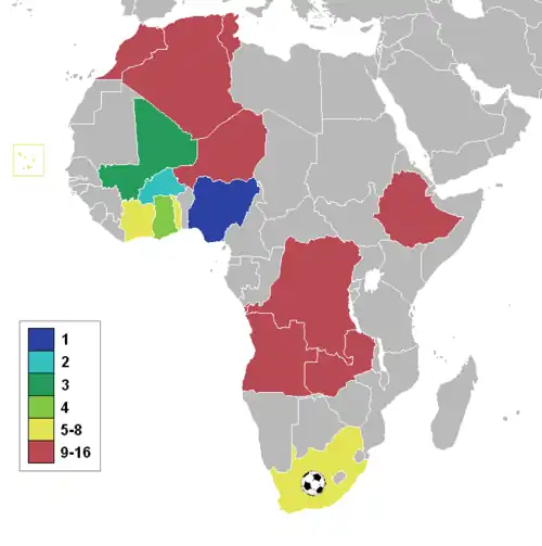 | Vencedor contra Serra Leoa | 13 de Outubro de 2012 | 15 (1962, 1963, 1965, 1978, 1982, 1994, 1996, 1998, 2000, 2002, 2004, 2006, 2008, 2010, 2012) | |
