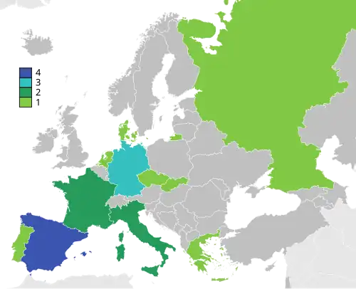 - 1 2 A Alemanha herdou os resultados obtidos pela Alemanha Ocidental.