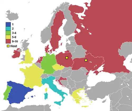 A organização do evento iniciou o processo de candidaturas com cinco candidatos, representando sete países: Croácia/Hungria (candidatura conjunta), Grécia, Itália, Polônia/Ucrânia (candidatura conjunta), e Turquia.