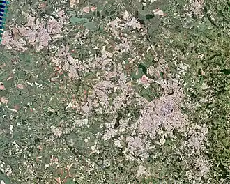 A Região Metropolitana de Campinas, formada por vinte municípios paulistas, possuía em 2014 uma população de mais de três milhões de habitantes, formando a décima maior área metropolitana do Brasil[14] e, junto com a Grande São Paulo, Região Metropolitana de Sorocaba, Vale do Paraíba e a Baixada Santista, integra o chamado Complexo Metropolitano Expandido, a primeira macrometrópole do hemisfério sul, que ultrapassava em 2008 trinta milhões de habitantes, aproximadamente 75% da população total do estado de São Paulo.[15] Dentre seus destaques nacionais, está o maior shopping da América Latina em território contínuo, o Parque Dom Pedro Shopping,[16] e a 2ª melhor universidade do Brasil, segundo a consultoria britânica Times Higher Education (THE).[17]