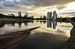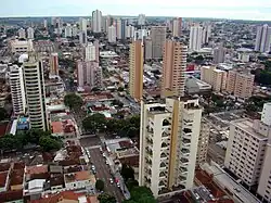 Panorama urbano com a Avenida Afonso Pena Torre da TV Morena Catedral Metropolitana Praça Ary Coelho Bioparque Pantanal Parque das Nações Indígenas Memorial da Cultura Indígena Palácio das Comunicações | |