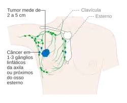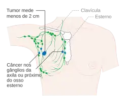 N3 Pode significar que o cancro se propagou para 10 ou mais gânglios linfáticos sob o braço, sob a clavícula ou sob o esterno ("N3a"); para os gânglios internos da mama e axilares ("N3b"); ou para os gânglios situados por cima da clavícula ("N3c").