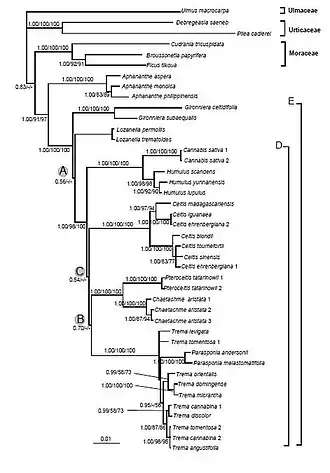 1. 1 2 3 Stevens, P.F. (2001 onwards) "Cannabaceae", Angiosperm Phylogeny Website, retrieved 2014-02-25