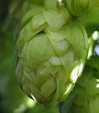 Inflorescência feminina de lúpulo (Humulus lupulus).