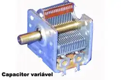 • Aqueles que usam uma construção mecânica para mudar a distância entre as placas, ou a superfície da área das placas superpostas. Esses dispositivos são chamados capacitores de sintonia, ou simplesmente "capacitores variáveis", e são usados em equipamentos de telecomunicação para sintonia e controle de frequências.Neste tipo de capacitor o elemento dielétrico é o próprio ar;