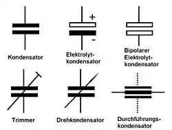 Capacitores são frequentemente classificados de acordo com o material usado como dielétrico. Os seguintes tipos de dielétricos são usados: